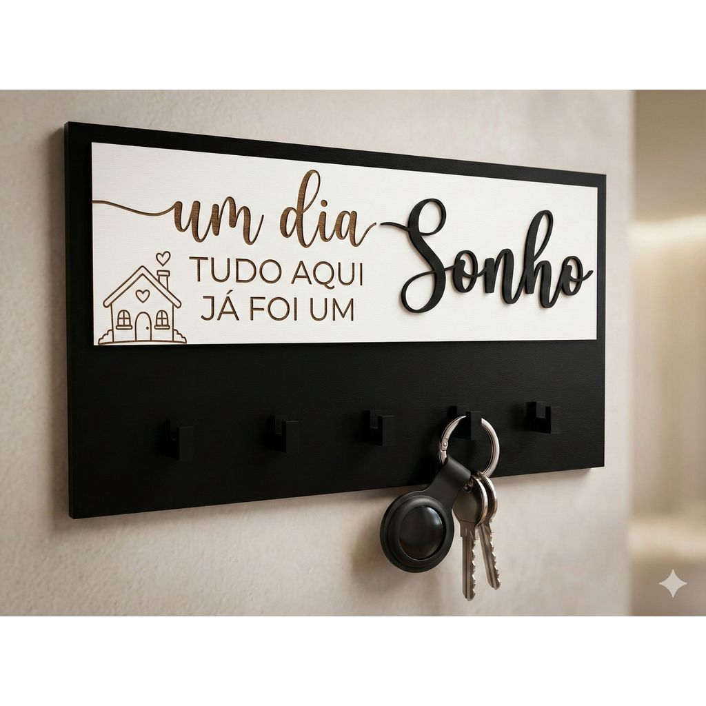 Comprar na ShopeePorta Chaves de Parede Decorativo MDF Organizador 5 Ganchos