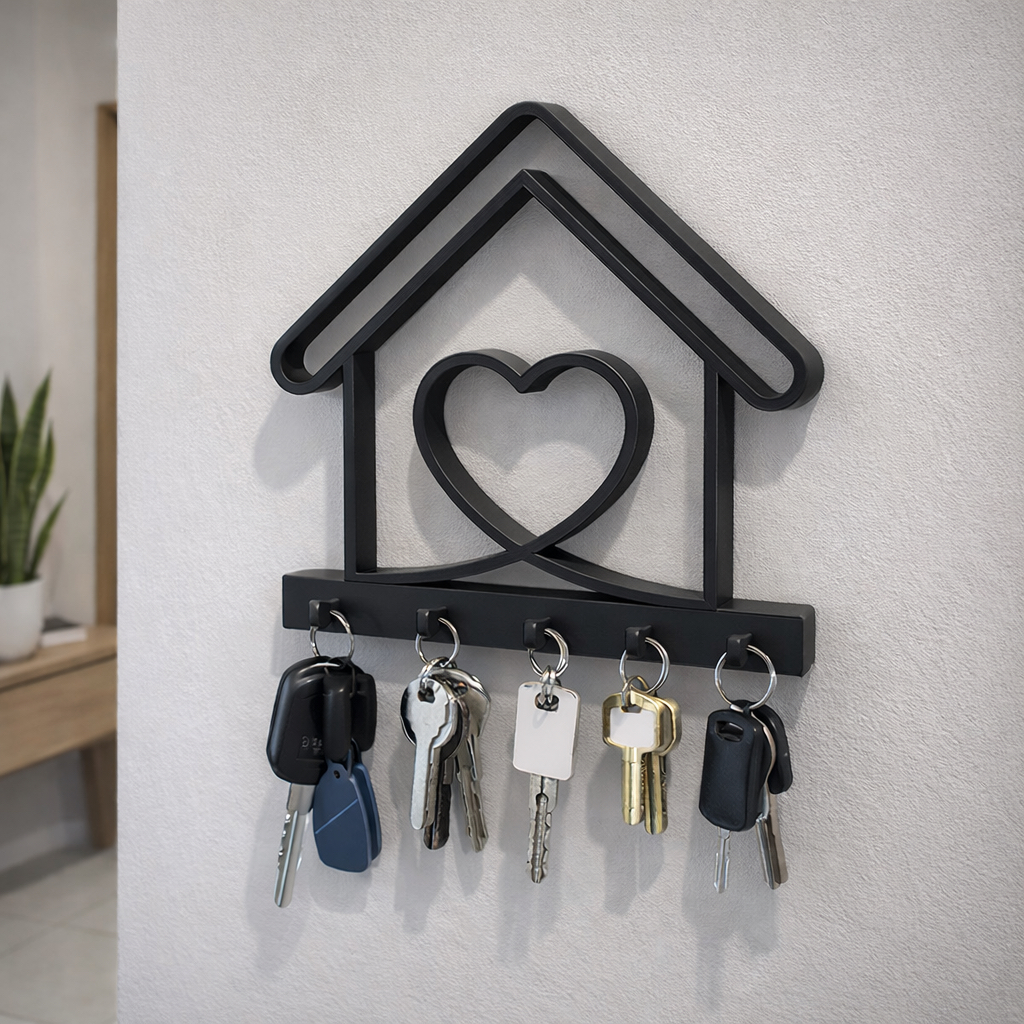 Porta Chaves Parede Decorativo 5 Ganchos Sem Furo - Zately