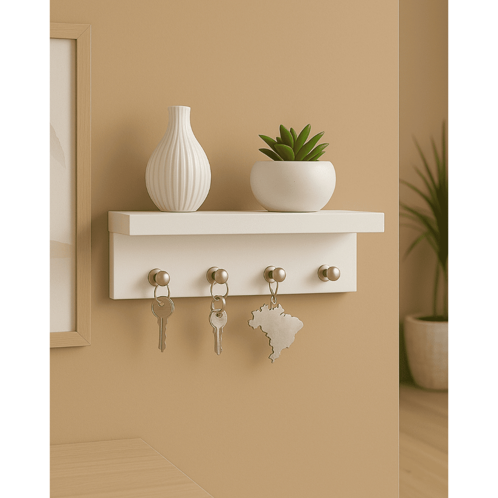Comprar na ShopeePorta Chaves Minimalista para 4 Chaveiros MDF - Branco