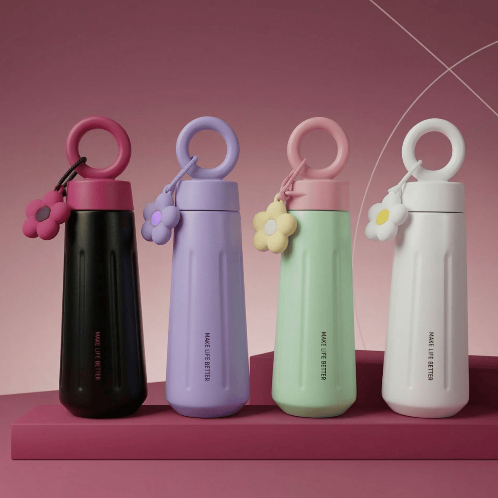 Comprar na ShopeeGarrafa Térmica Inox 450ml Chaveiro de Flor Squeeze Portátil