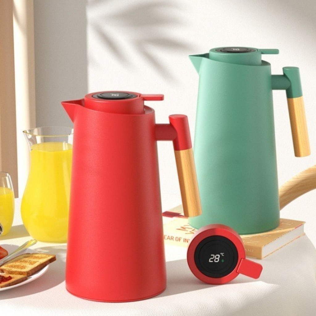 Comprar na ShopeeGarrafa Térmica Termometro Digital 1L Café Chá Nórdica Com Cabo Madeira