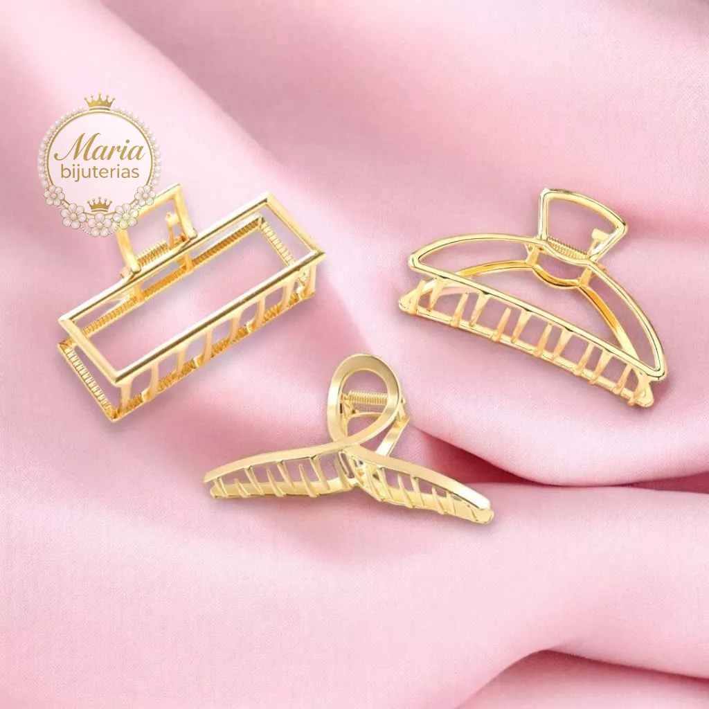 Comprar na ShopeeKIT 3 peças Piranha P média Dourada de metal vários modelos blogueira !!