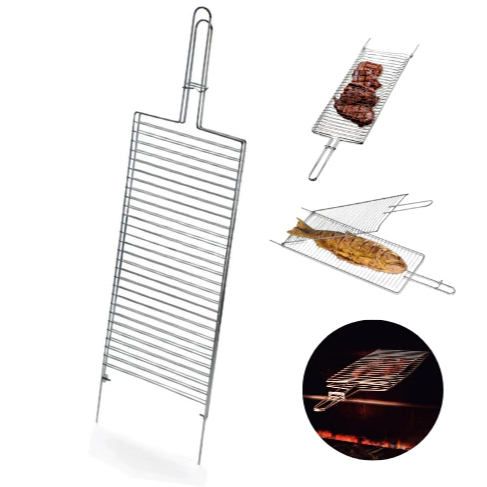 Comprar na ShopeeGrelha Dupla Abaulada Dobrável Fecho Aço Inox Assar Peixe Frango Carne Linguiça Churrasco Tramontina