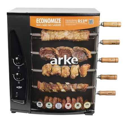 Comprar na ShopeeChurrasqueira a Gás Com 5 Espetos Giratórios Assador Rotativo Bivolt Aço Carbono GLP Arke AGR