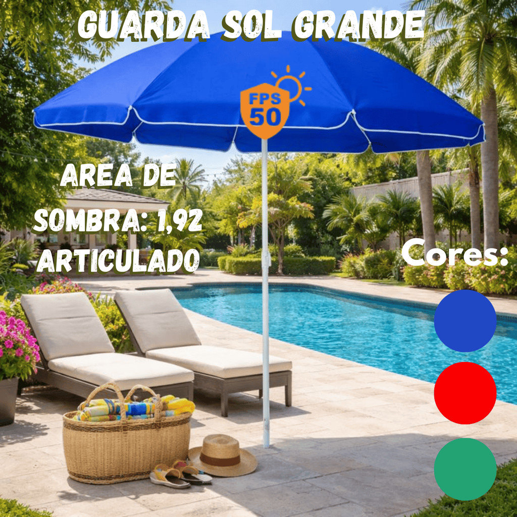 Comprar na ShopeeGuarda-sol Grande 1,92m Articulado 90° Proteção Uv Praia Verão Piscina Azul Vermelho Verde 50 FPS