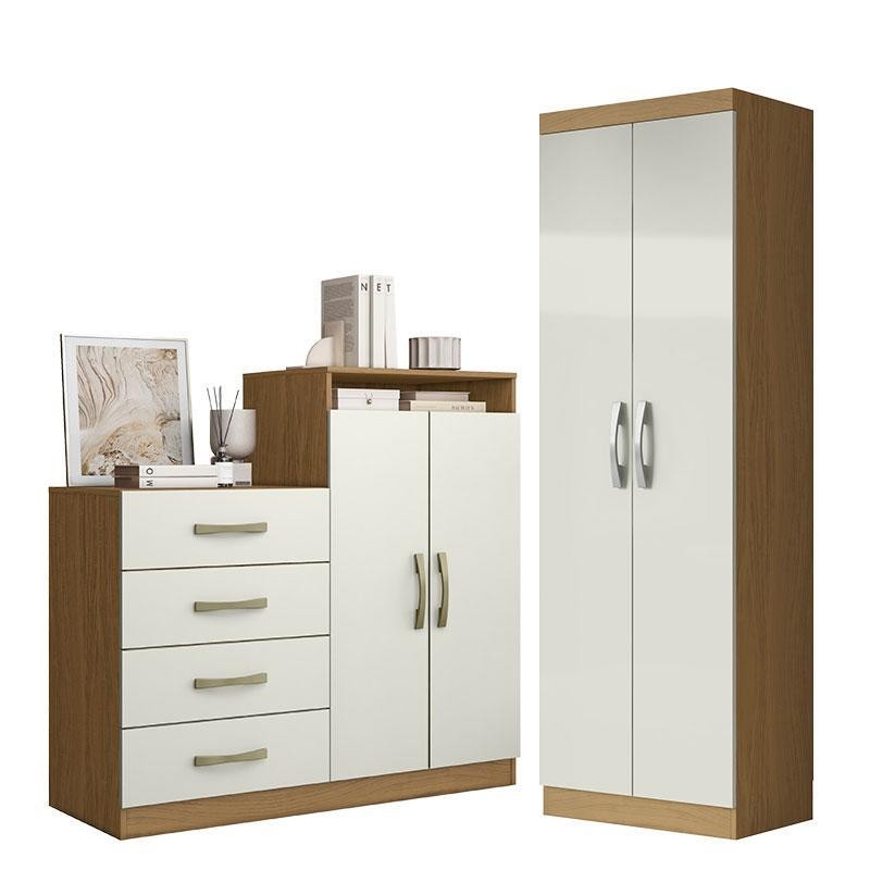 Comprar na ShopeeCômoda Sapateira Londres 2004142 e Armário Multiuso New 2000192 Atacama Off White - Aramóveis
