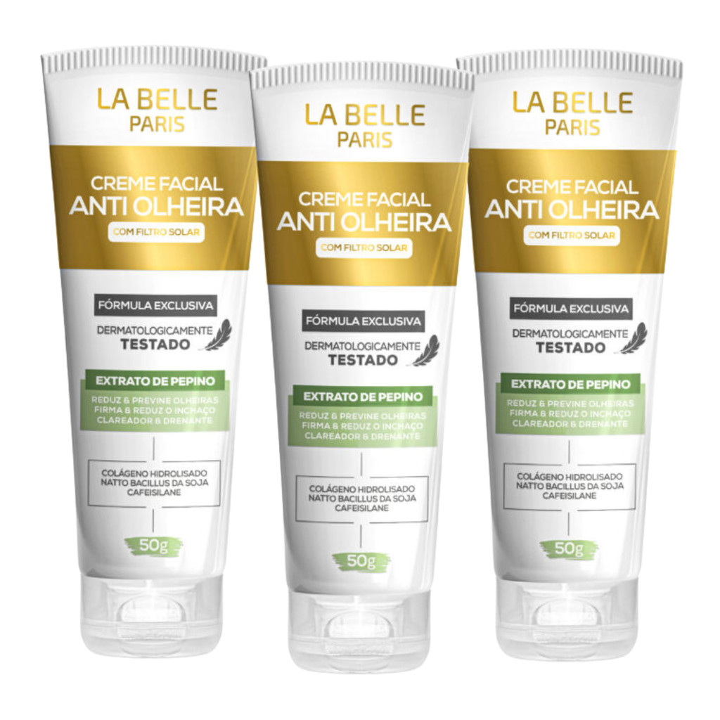 KIT 3 CREME FACIAL 50G ANTI OLHEIRAS COM FILTRO SOLAR - LA BELLE PARIS