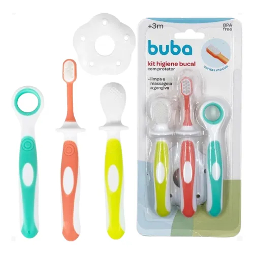 Comprar na ShopeeKit Escova de Dente Bebê C/Protetor Limpador de Língua e Massageador de Gengiva Buba