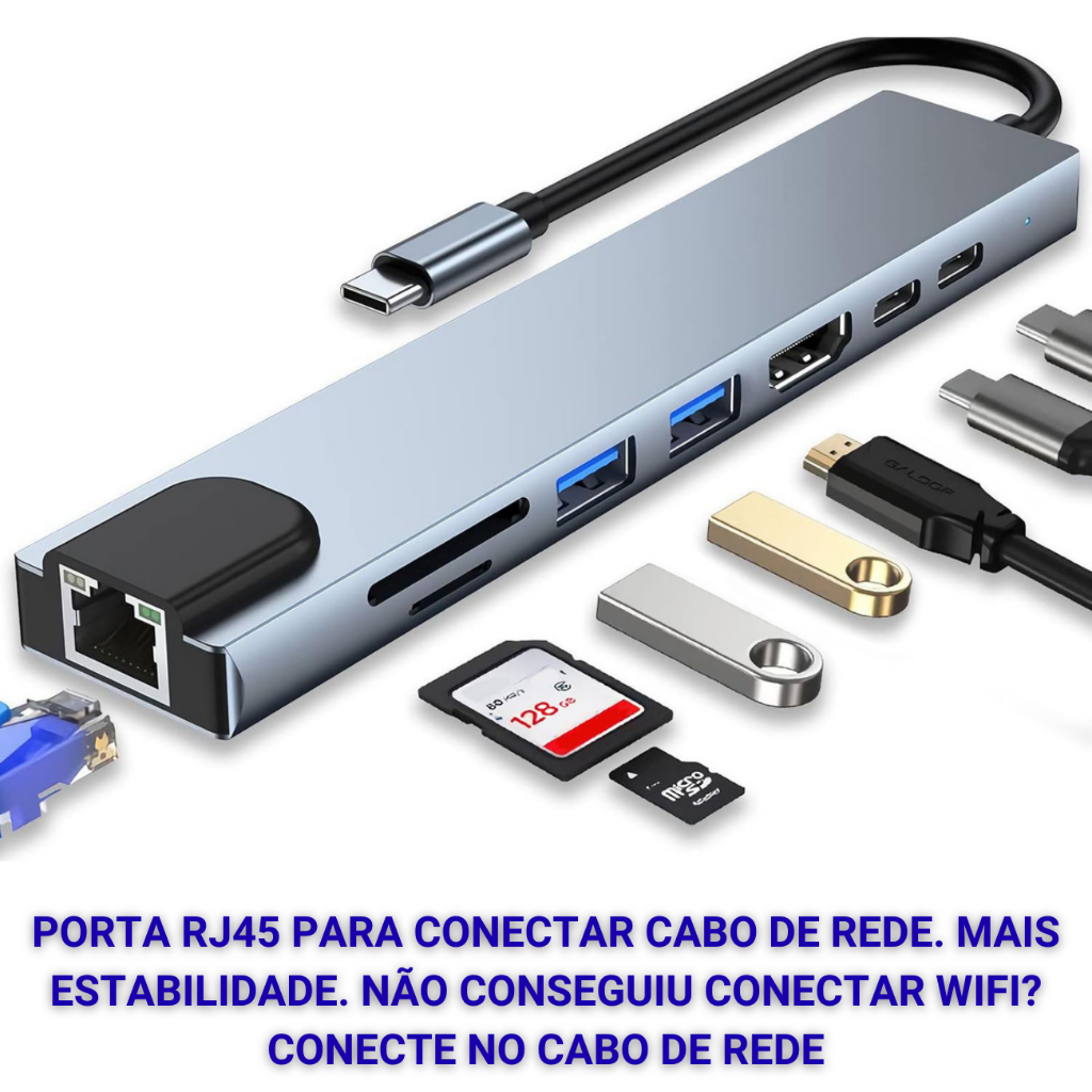 Comprar na ShopeeAdaptador Hub 8 Em 1 Usb 3.0 Tipo C Macbook Note RJ45 Lan 4k SD Leitor Cartão TF Cinza-escuro