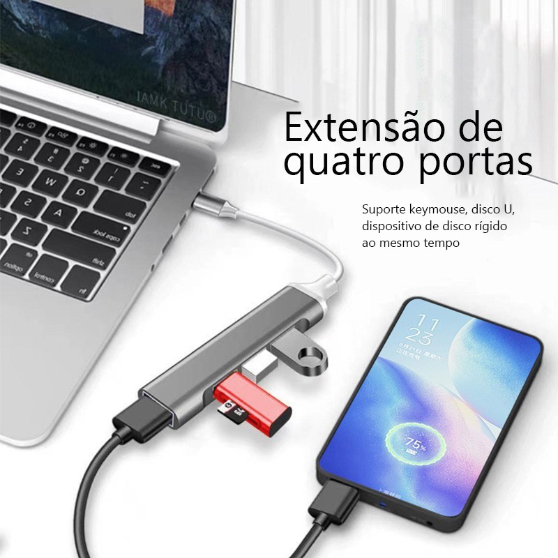 Comprar na ShopeeHub 4 Portas Super Rapido USB Tipo C Com Carregador De Alta Velocidade 3.0 Adaptador OTG 4 Porta Para Computador Celular