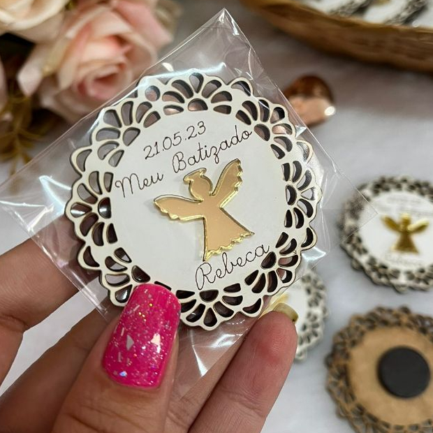 Kit Lembrancinha de Batizado Imã de Geladeira Anjinho
