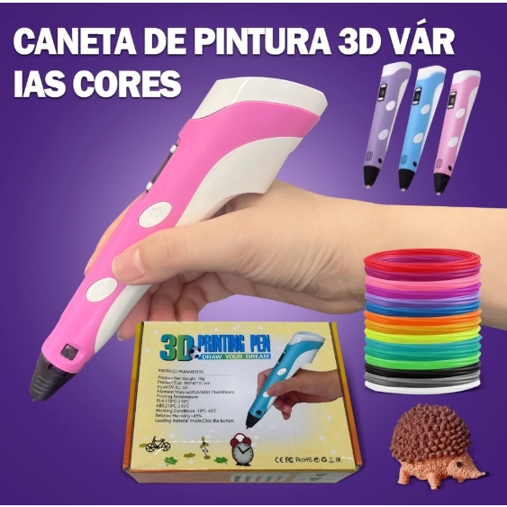 Caneta 3D Impressora Manual Infantil e Adulto Com Filamentos DIY Filamento Plastico ou ABS Tela LCD Desenho 3D Seguro