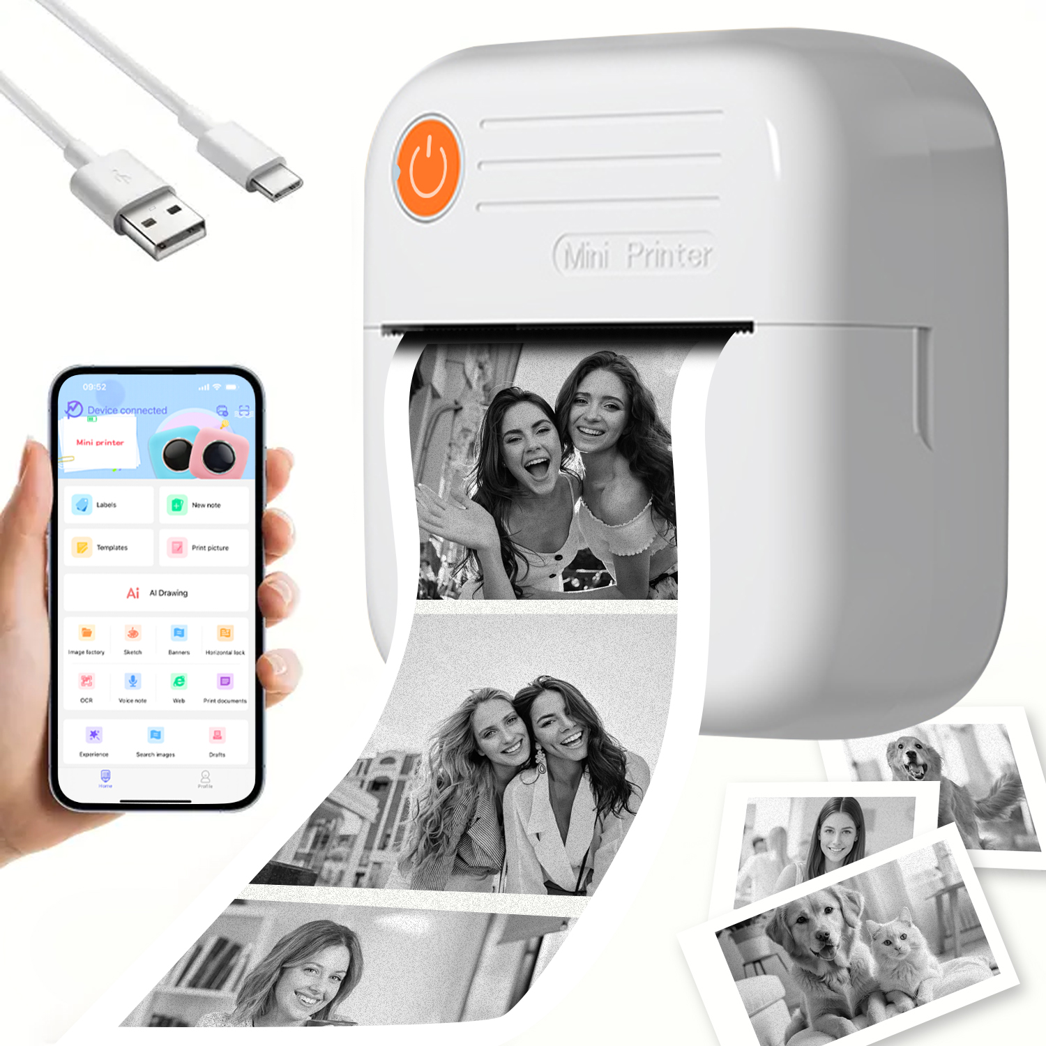 Mini Impressora de Etiquetas Térmicas - Impressora de Fotos Portátil, Máquina de Criação de Etiquetas e Fotos,