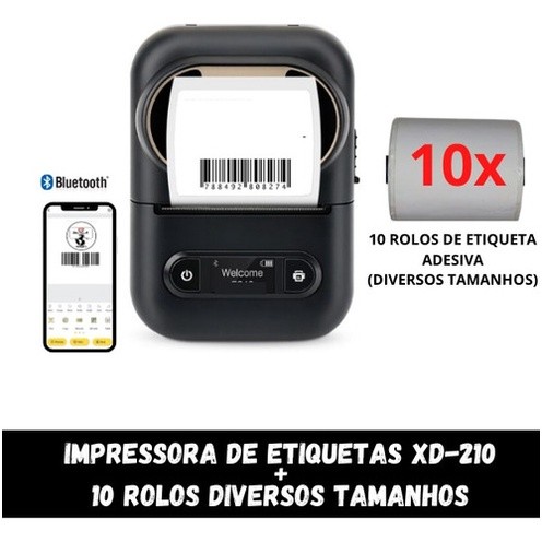 1 Impressora Xd-210 + 10 Rolos Etiquetas Tamanhos Diversos E210