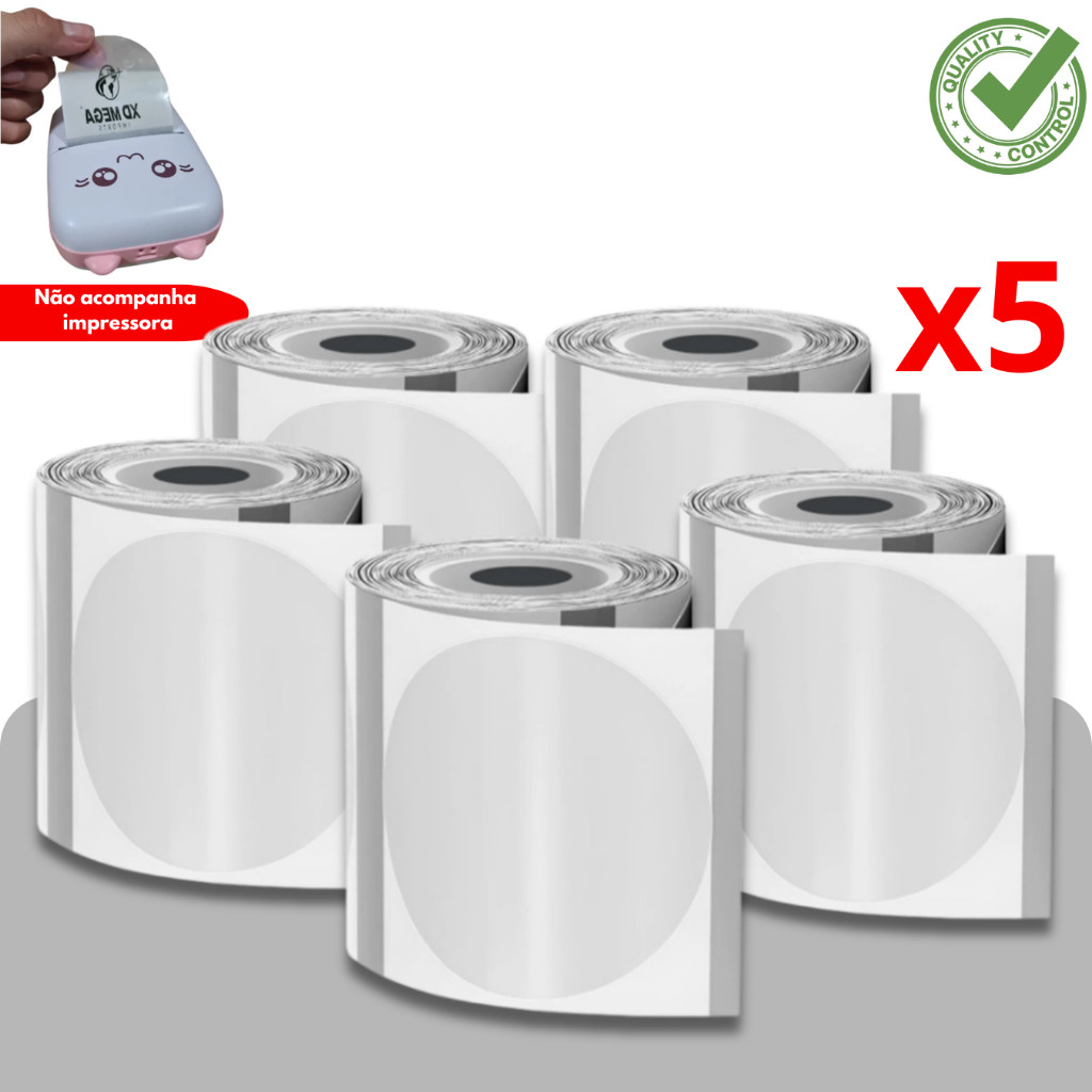 5 ROLOS DE ETIQUETA REDONDA 50X50 TRANSPARENTE PARA IMPRESSORA GATINHO