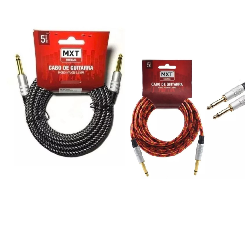Cabo Para Guitarra Violão 5m Metros Blindado P10 P10 Têxtil