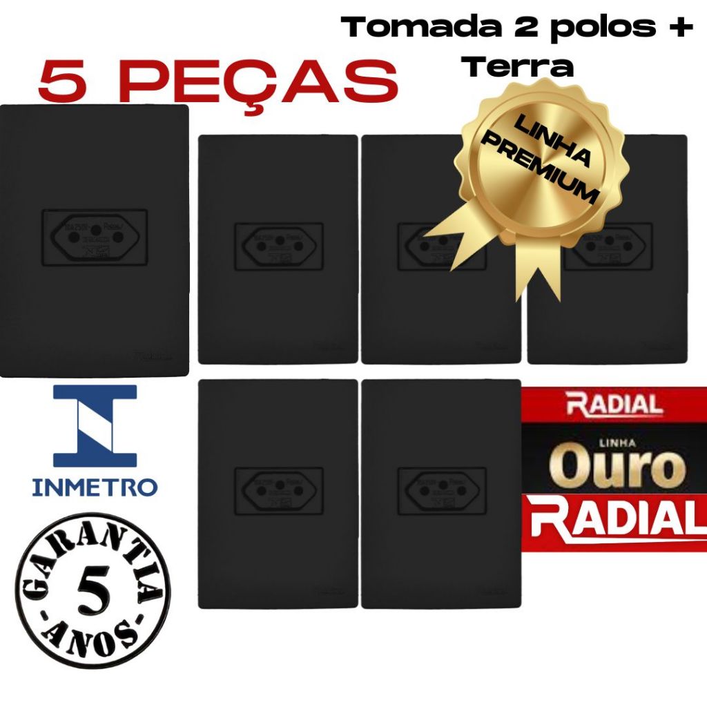 Comprar na ShopeeKit 5 Tomadas 2 Polos + Terra 10A / 20A Linha Ouro Preto Fosco Modular 4x2 Com Placa 110-220v