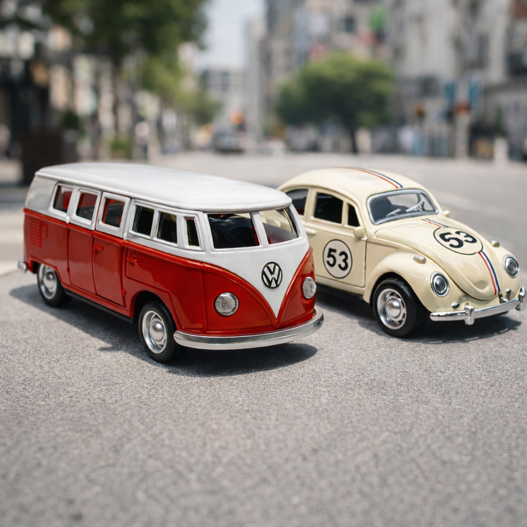 Carrinhos em Miniatura De Fusca e Kombi Metal Fricção Clássicos VW | Portas que Abrem | Kit Colecionável