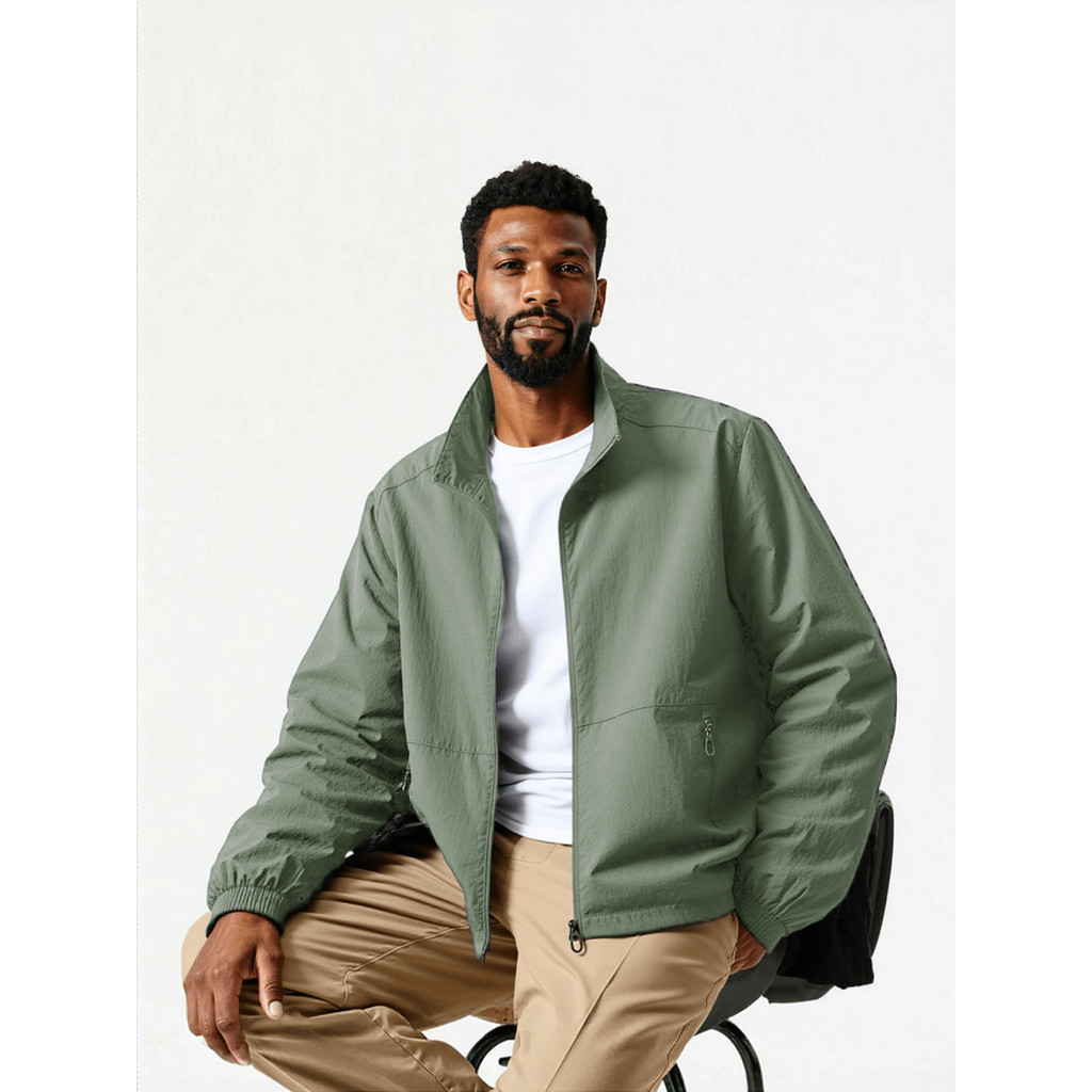 Comprar na ShopeeJaqueta Masculina Corta Vento Impermeável Liso Com Zíper sem Forro e Capuz