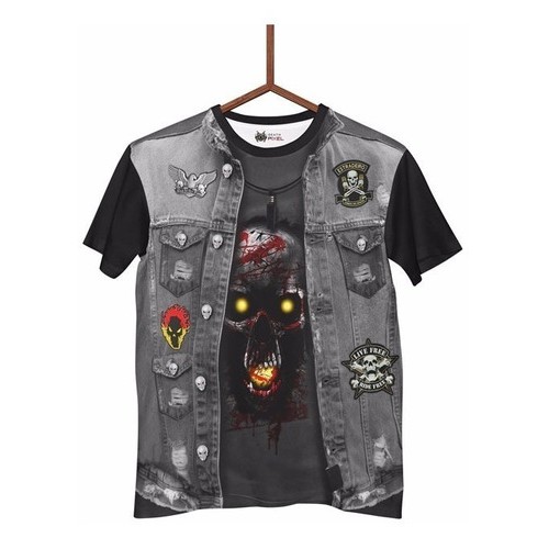 Comprar na ShopeeCamisa Caveira Jaqueta Jeans Moto Clube Skull 3d Cv017