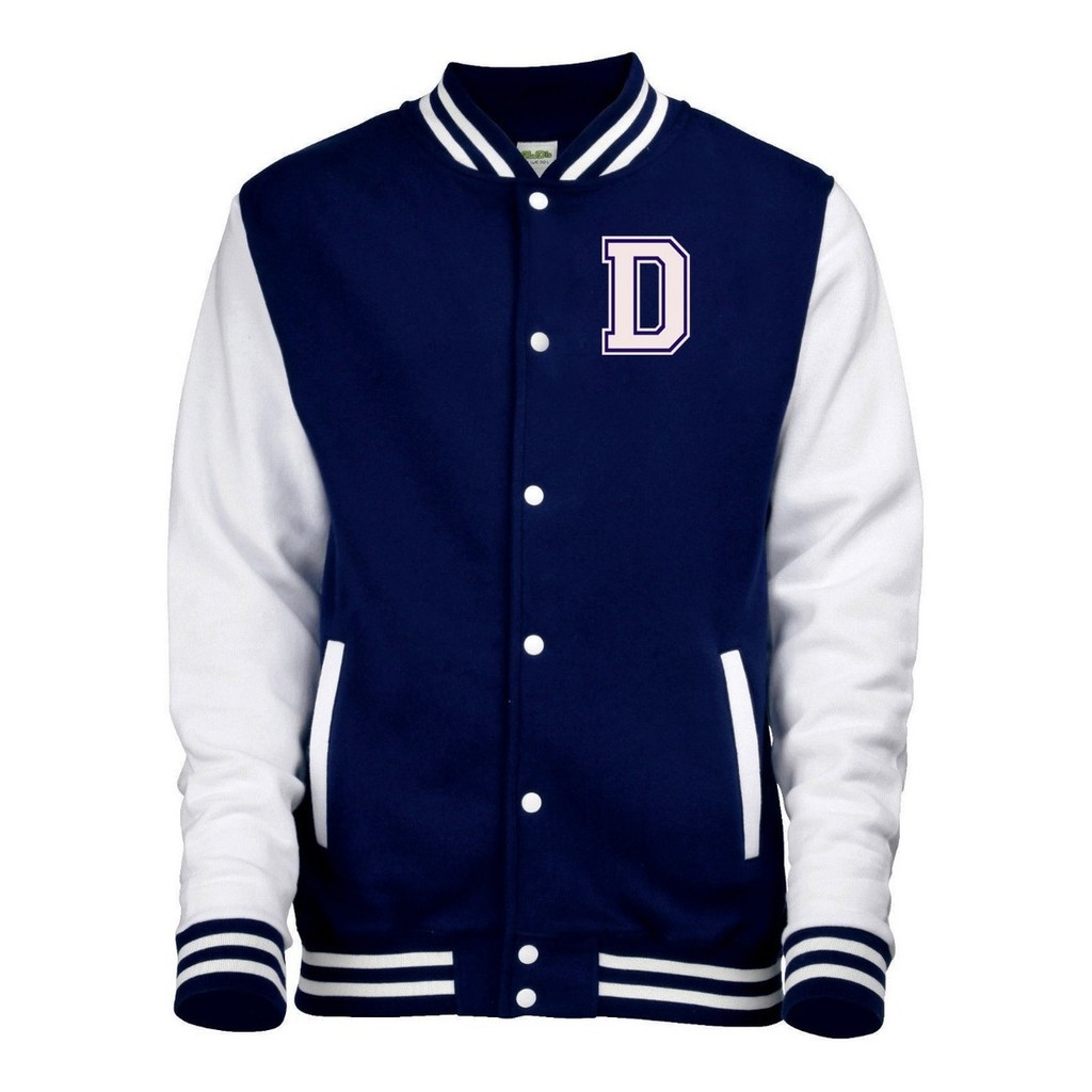 Jaqueta College Americana Letra D Bordada Alto Relevo, Algodão - Várias Cores - Unissex