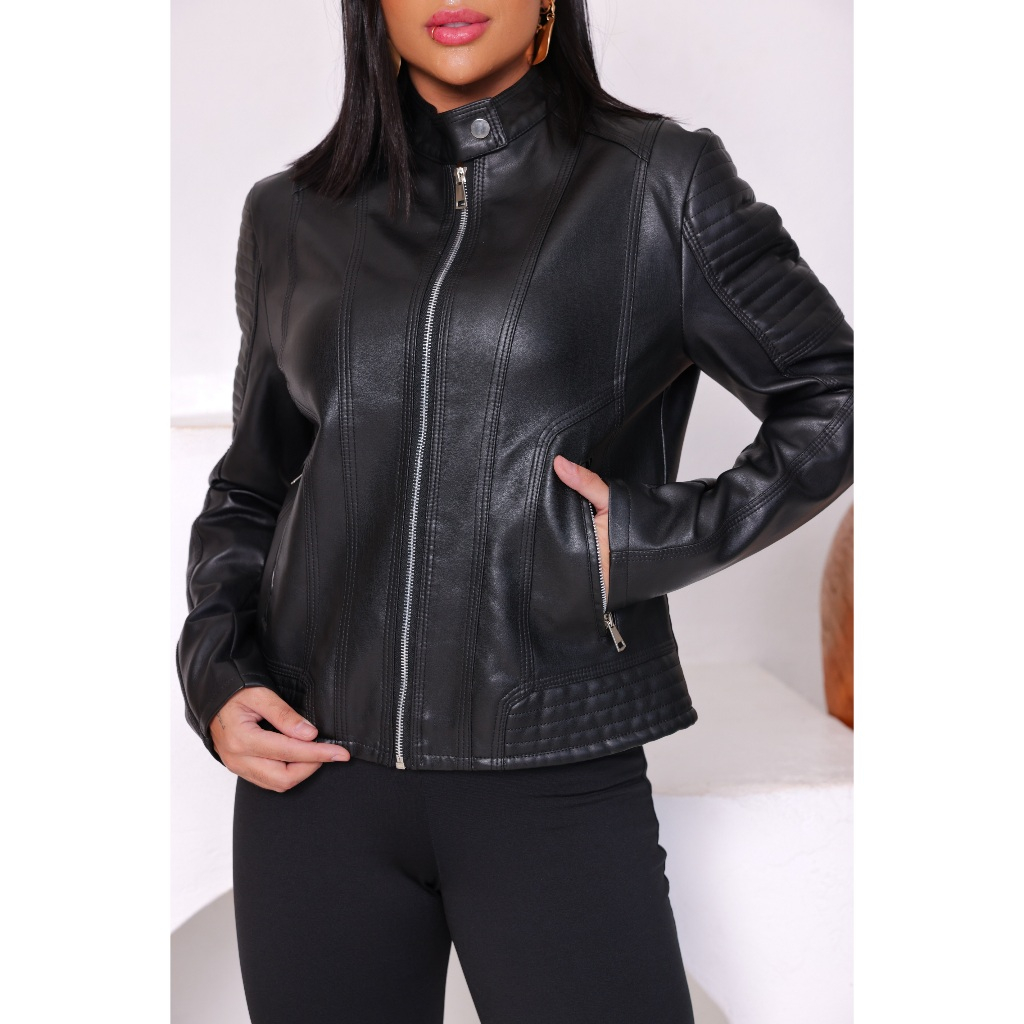 Jaqueta de Couro Feminina Elegante Marrom Preto Corte Slim Fit De Promoção