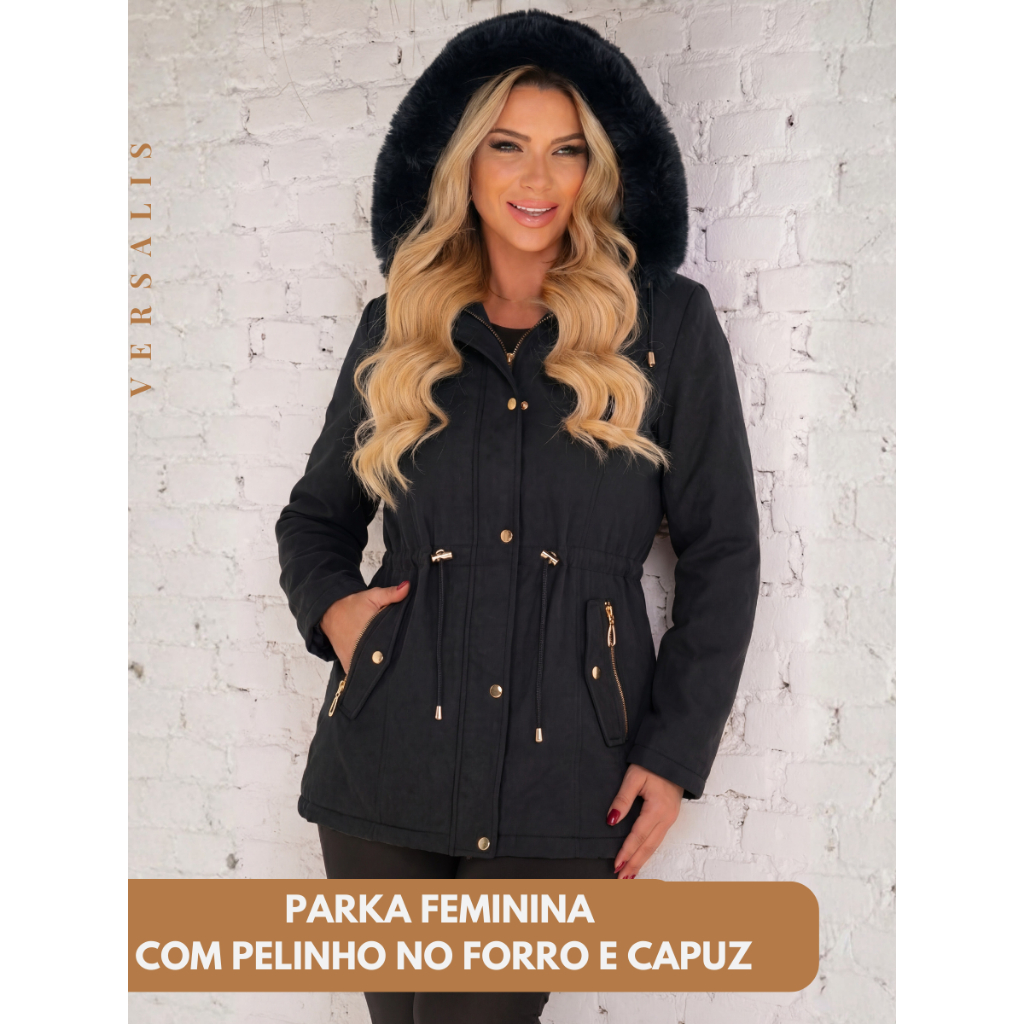 Comprar na ShopeeSobretudo Feminino Parka Forro Pelo Pelinhos Capuz