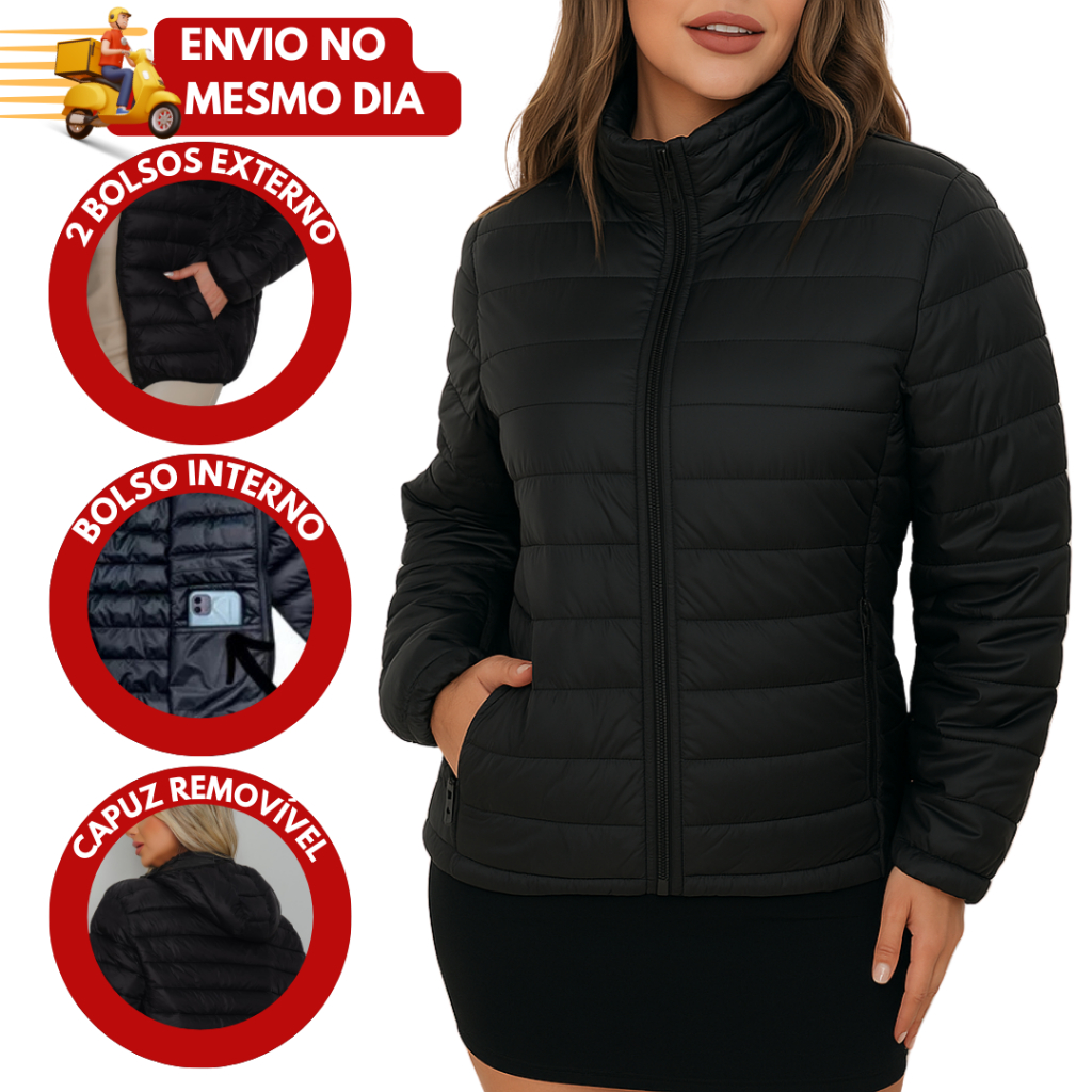 Comprar na ShopeeJaqueta Feminina Puffer Bobojaco Com Capuz Nylon Impermeável Corta vento