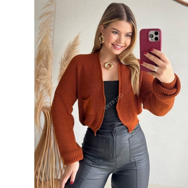Casaco Tricot Feminino detalhe Bolsinho Jaqueta Feminina em Tricot Quentinha Outono Inverno