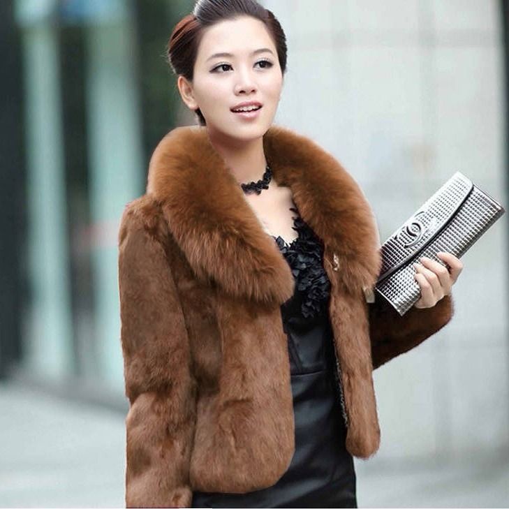 Comprar na ShopeeLuxo Imitação Rex Coelho Casaco De Pele Das Mulheres Curto Inverno Artificial Gola De Raposa Jaqueta