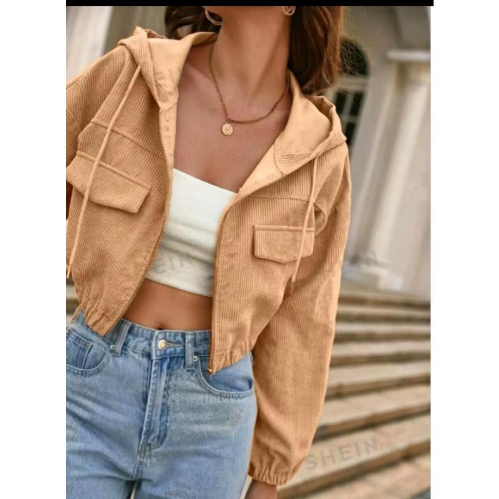 Comprar na ShopeeJaqueta Feminina Cropped com Botões Dourados – Estilo e Sofisticação