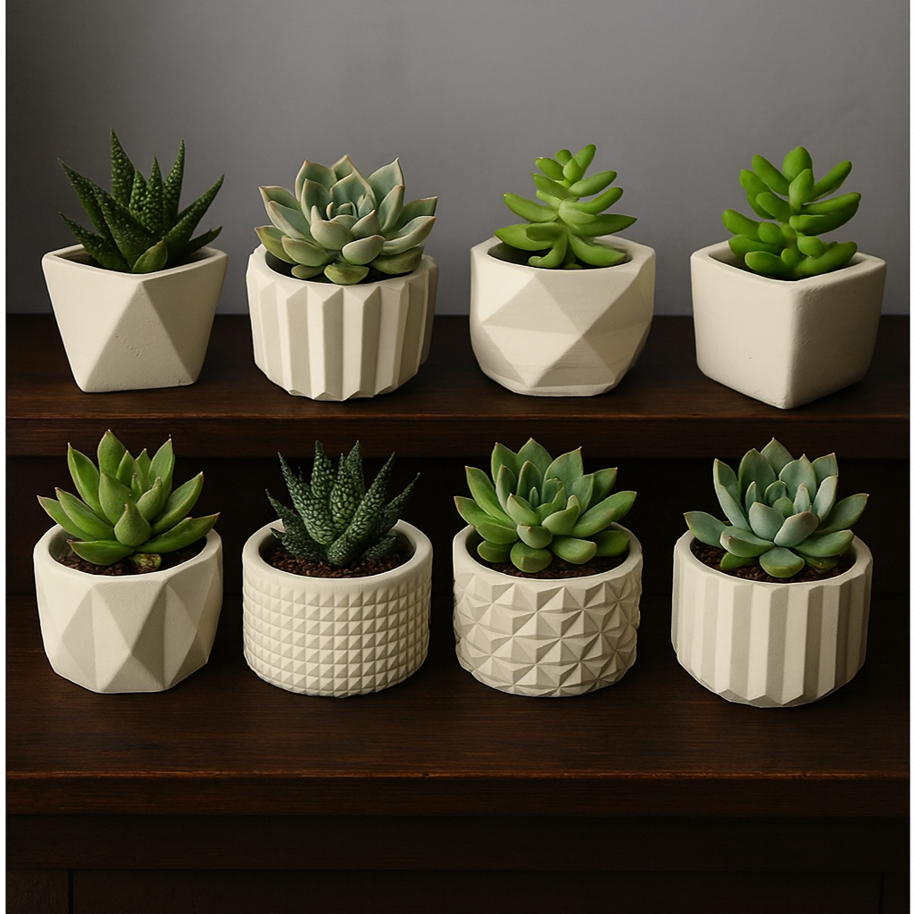Kit Até 8 Unidades Vasinho Decorativo de Gesso Com Textura, Cactus e Plantas Artificiais.