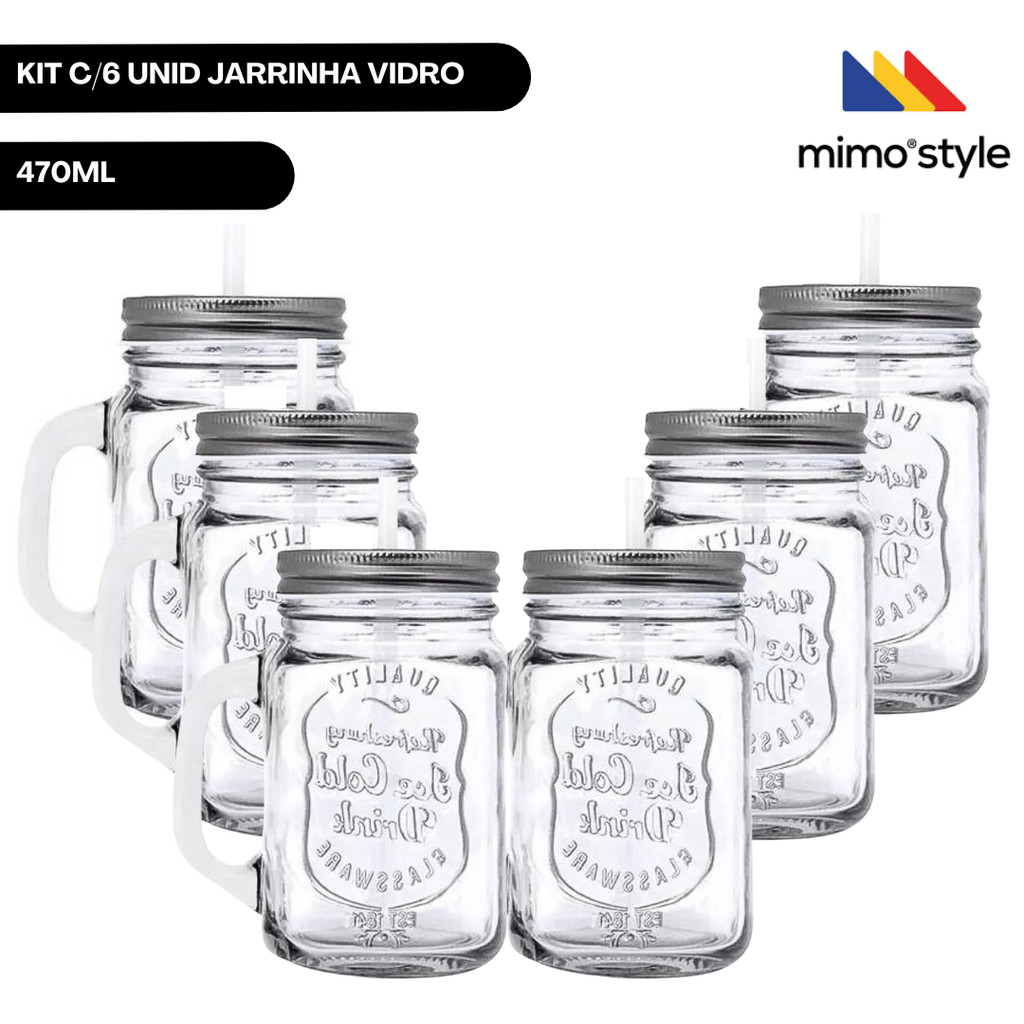 Comprar na ShopeeKit c/6 Unid Jarrinha Retrô 470ml Caneca Vidro Vítreo Mimo Style