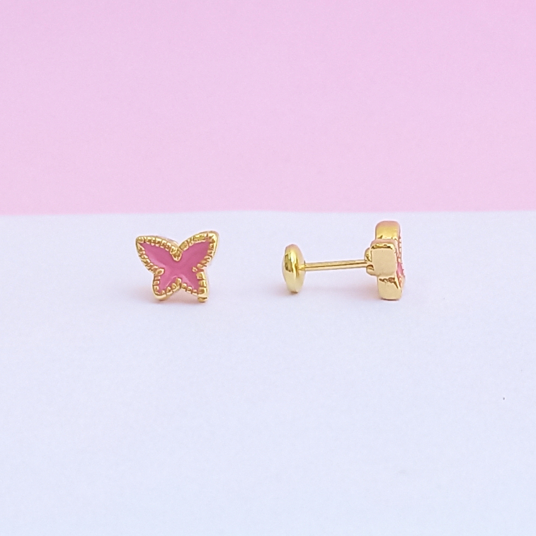 Comprar na ShopeeBrinco Infantil Borboleta Rosa – Tarraxa Baby – Banho Ouro 18k – Hipoalergênico