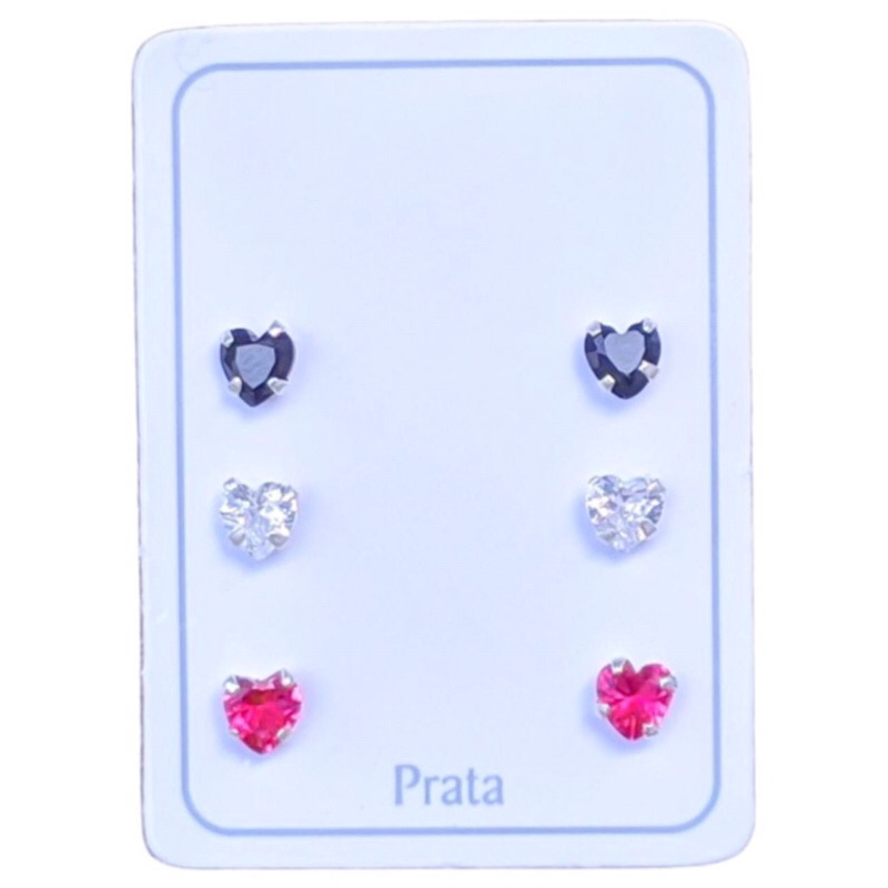 Kit 3 Pares Brinco Coração 4mm Prata 925 Infantil | Brinco Bebê Tarraxa Baby Antialérgico