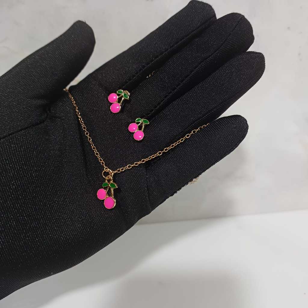 Comprar na ShopeeBrinco e colar cereja Infantil menina Bijuteria Menina Chery Cherry