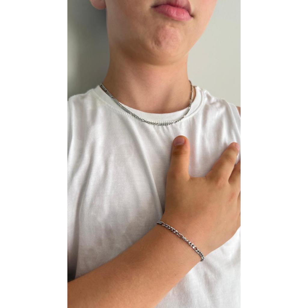 Kit Corrente e Pulseira Infantil Fígaro 5x1 3mm Aço Inoxidável Prata