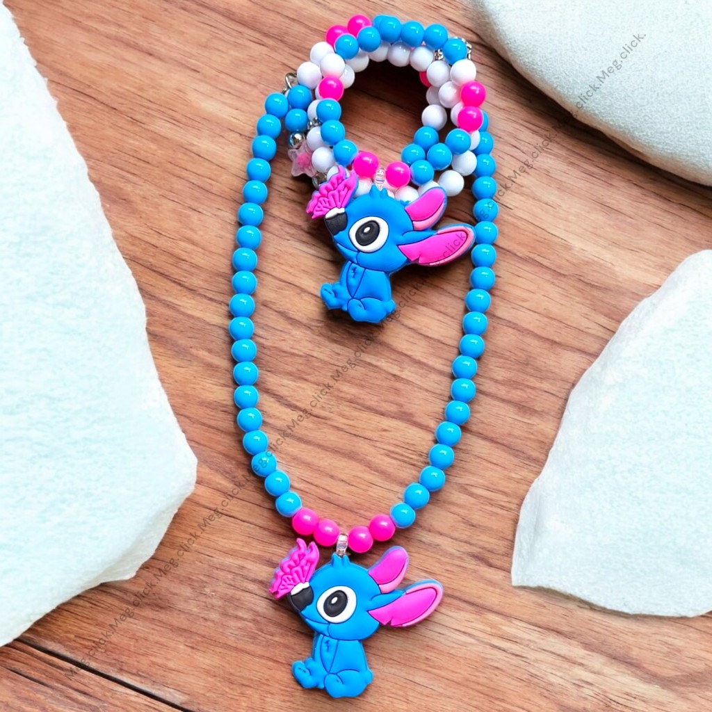 Comprar na ShopeeKit Colar e Pulseira Infantil | Miçanga Colorida com Pingente – Acessório Fofo para Crianças