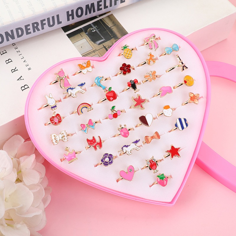 Comprar na ShopeeCaixa de 36 Anéis De Liga Ajustável Sortidos Bebê Menina Moda
