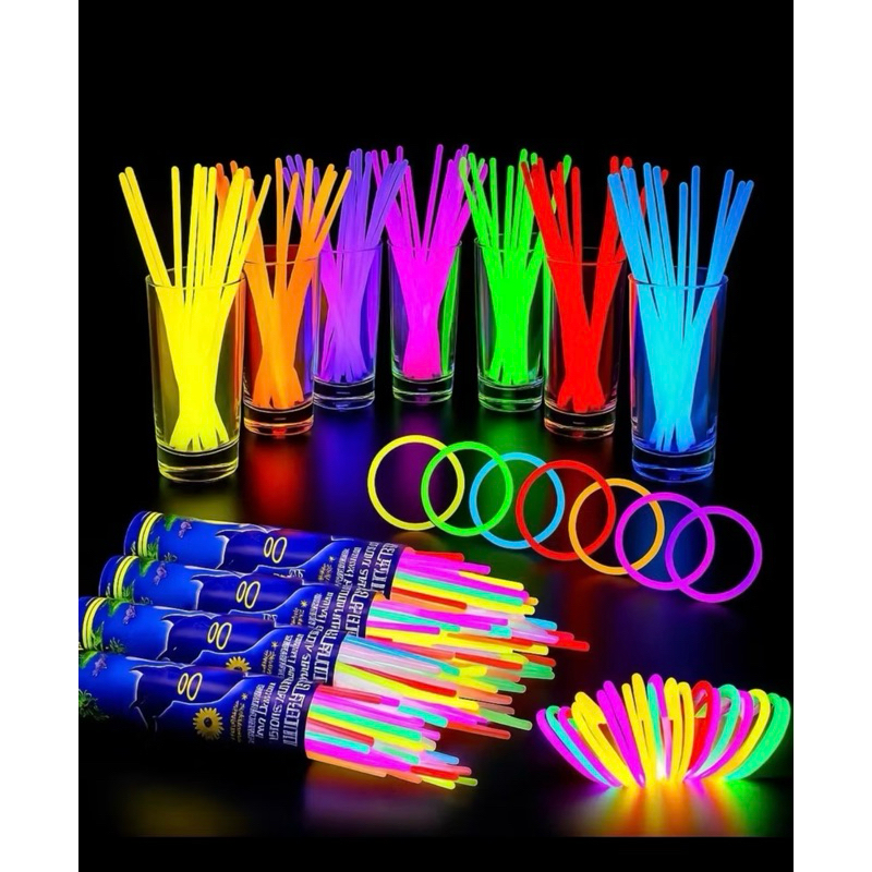 Comprar na ShopeePulseira Neon Brilha no Escuro Colorida Fluorescente Kit com 20/50 unidades