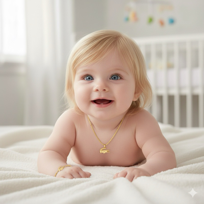 conjunto corrente e pulseira jacaré baby e infantil banhada a ouro 18k