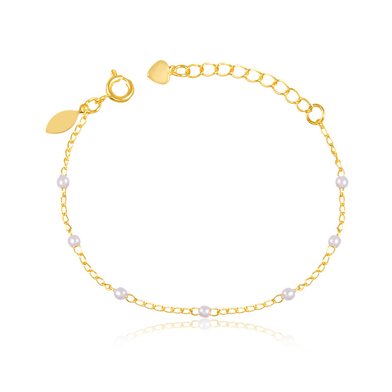 Comprar na ShopeePulseira Banho de Ouro 18K Infantil Elos 1x1 com Detalhe em Pérolas Rosadas (13cm + 3cm)