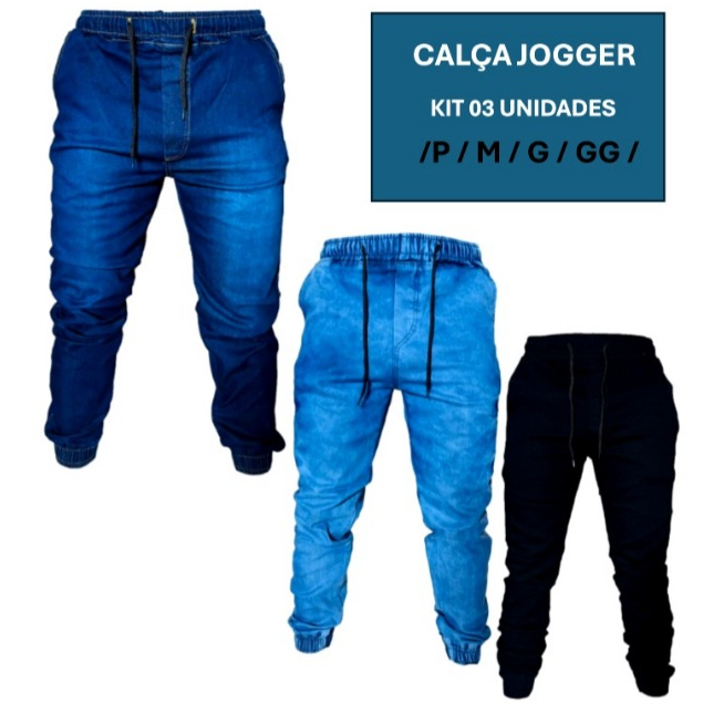 Comprar na ShopeeKit 2 Calça Jogger Masculina Jeans Adulto Slim Moda Direto Da Fábrica Joger Academia Com Punho Novidade