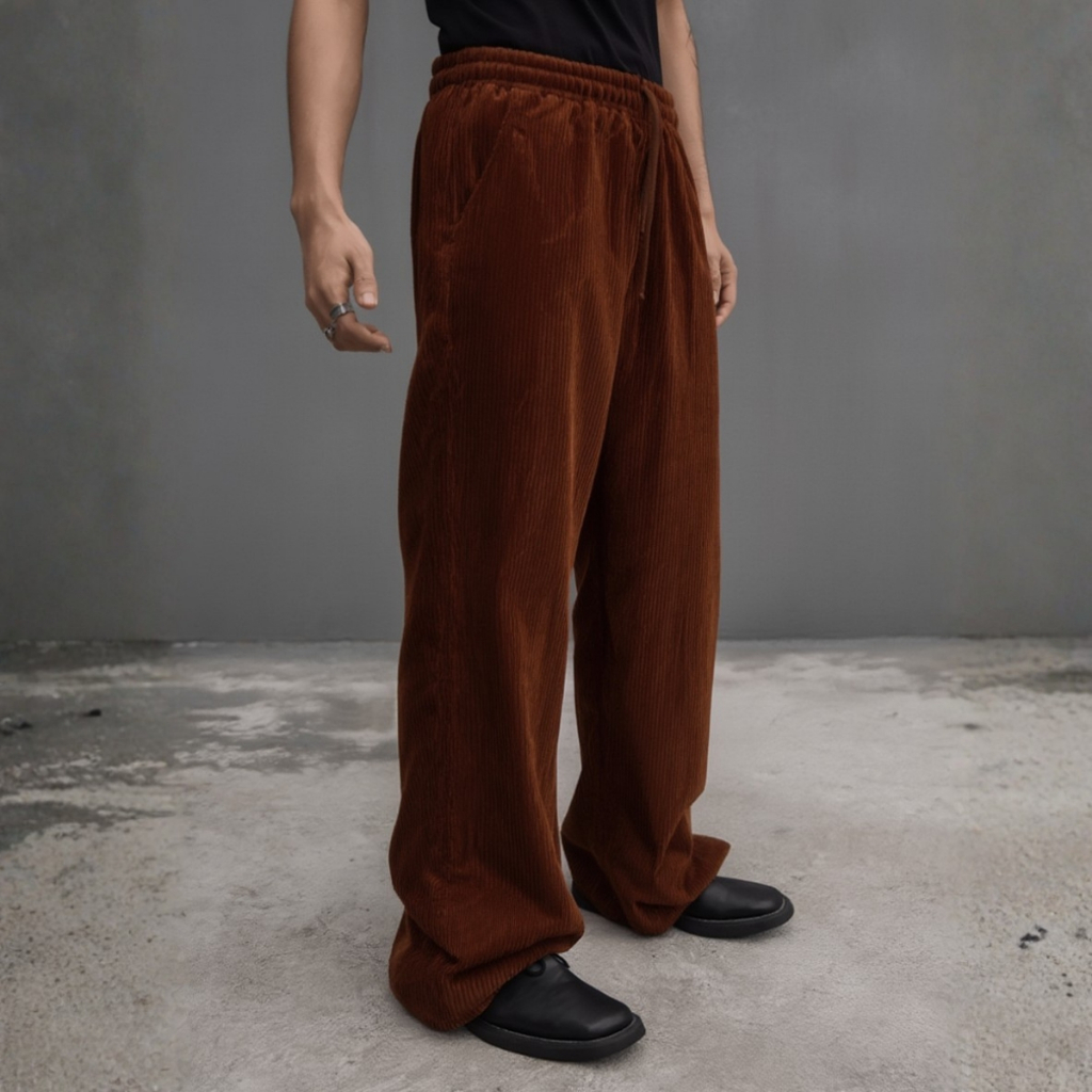 Comprar na ShopeeCalça Wide veludo cotelê Streetwear Masculina Ajustável Tendência Premium Confortável