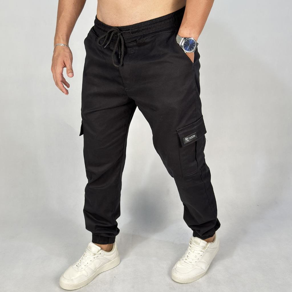 Comprar na ShopeeCalça Cargo Jogger Masculina Elastano Sarja Punho Elastico Street Casual Preto