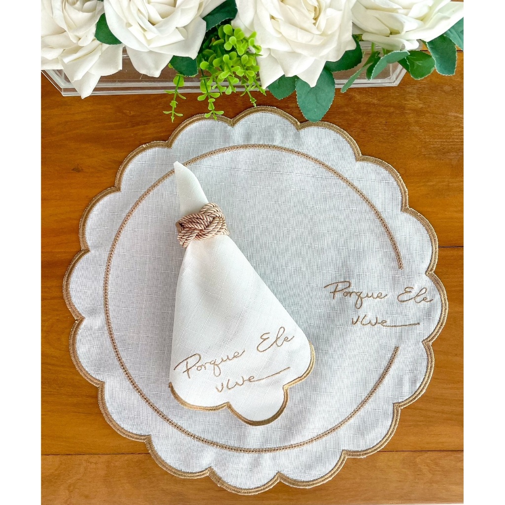 Comprar na Shopee8 Pçs (4 Jogos) Jogo Americano Bordado EleVive Bege com Dourado Com Guardanapo