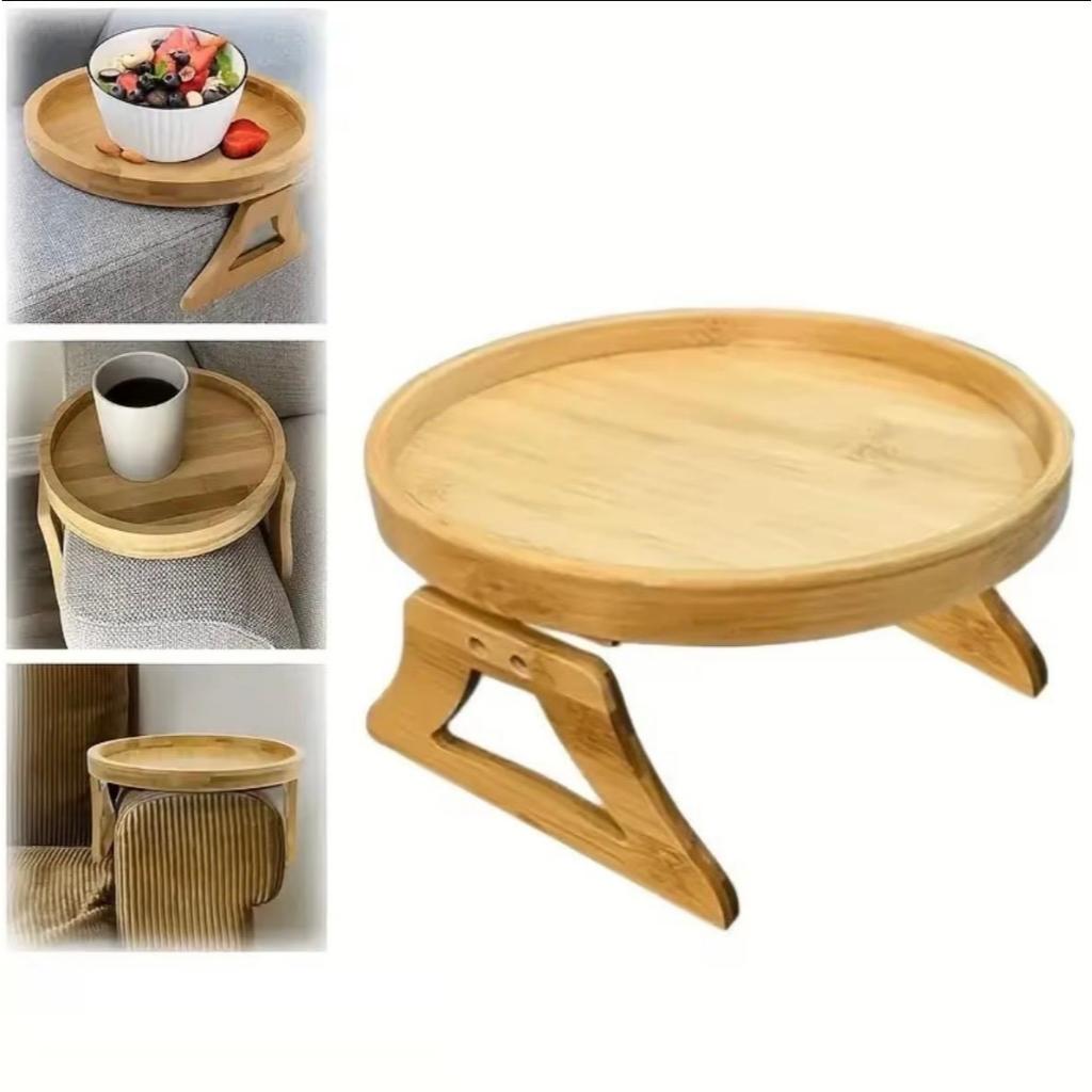 Comprar na ShopeeBandeja Apoio Dobrável Para Braço de Sofá em Bambu Modelo Redondo Porta Copo Alimento