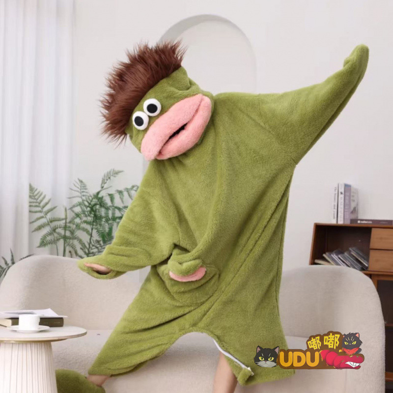 Pijamas de Pelúcia de Peixe com Boca Grande e Fofinho, Engraçado, Peixe Feio, Pijama de Uma Peça, Outono Inverno, Roupa