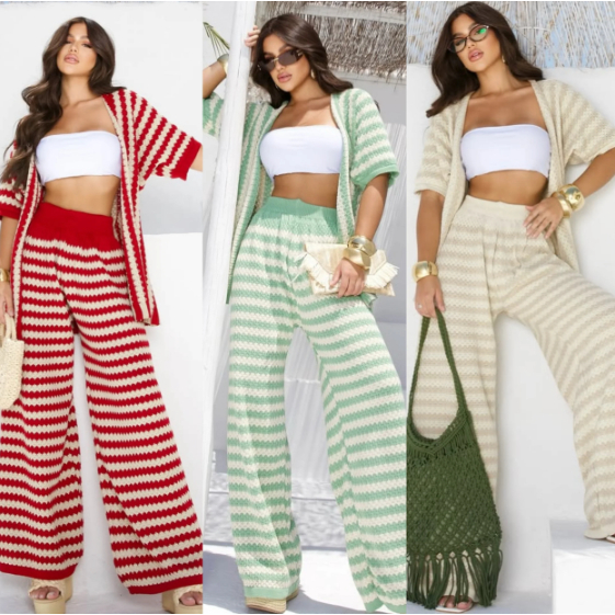 Comprar na ShopeeConjunto De Calça Kimono Tricot Com Cardigan Longoe Calça Listrada Natal Moda Praia Verão 2026 Feminina