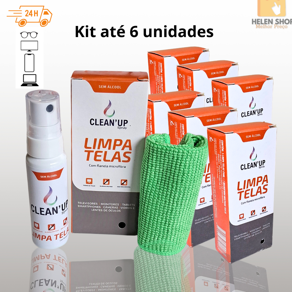 Kit de Limpa Lentes e Telas Clean Up 25ml Óculos Tv LCD Plasma Celular + flanelas